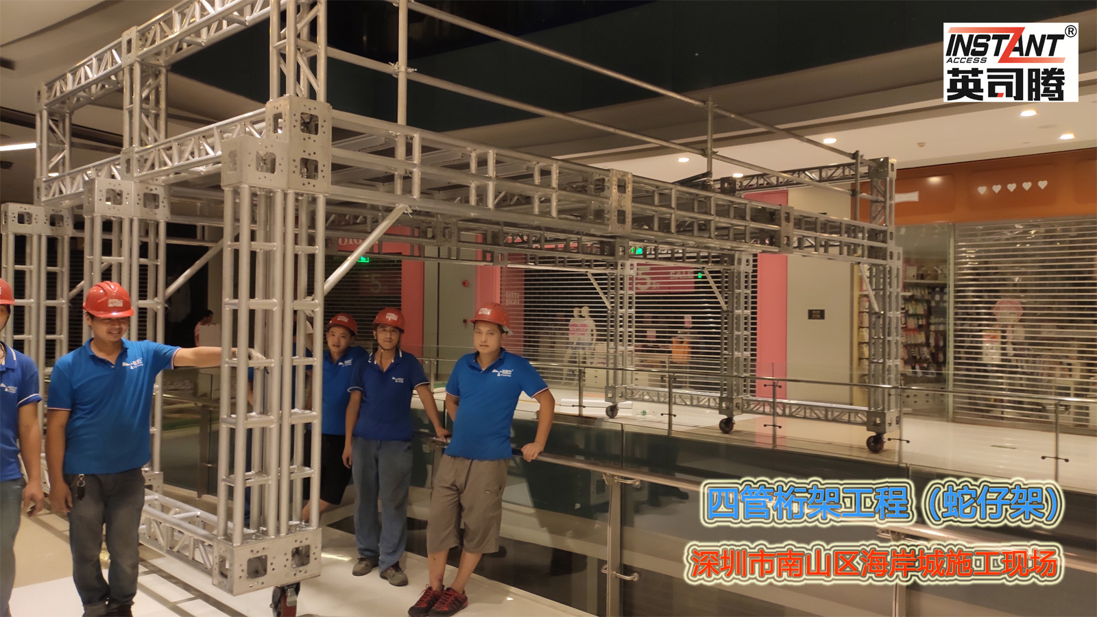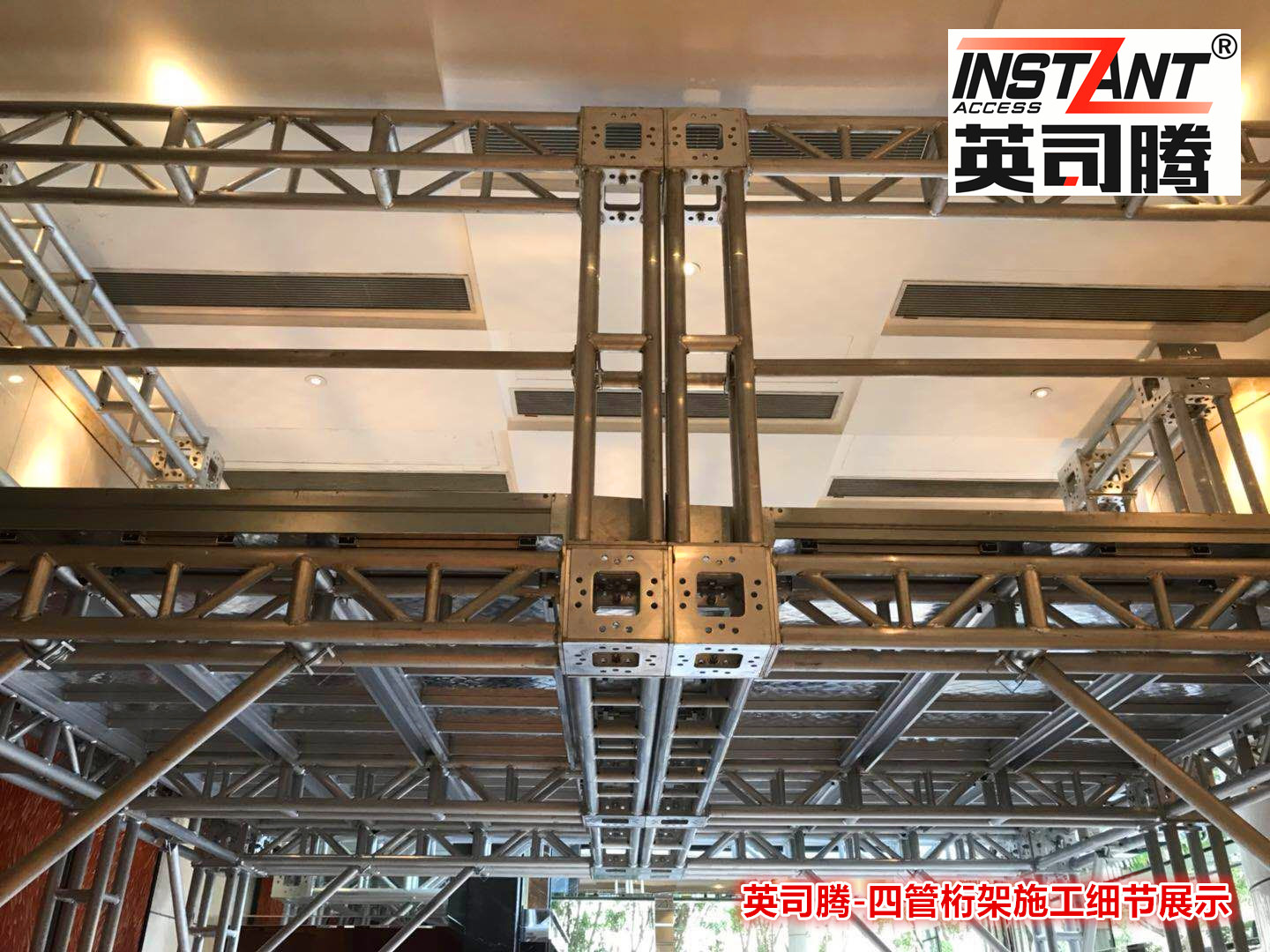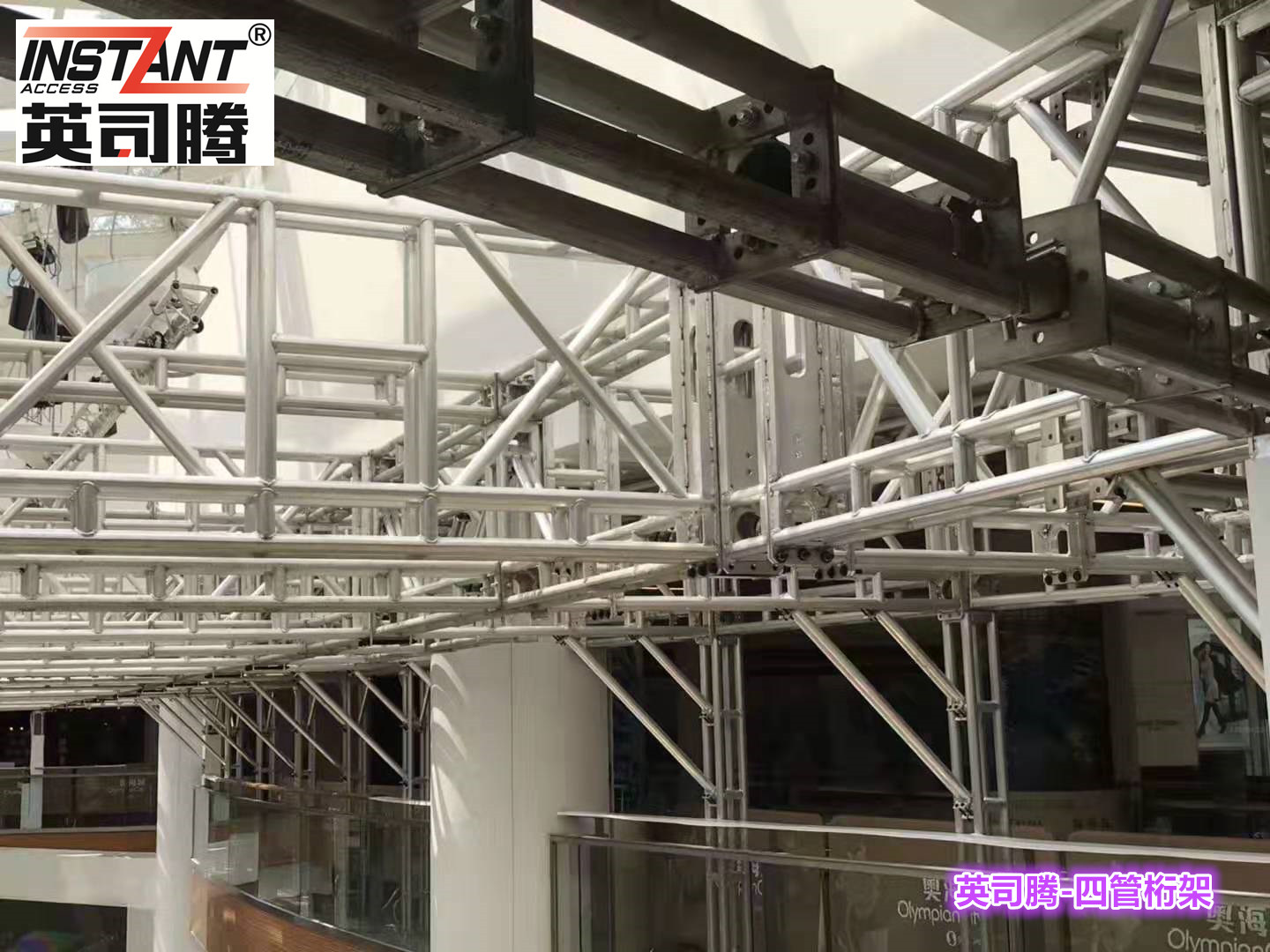 铝合金四管桁架(蛇仔架)工程系统是一种新型的铝合金工作平台,随着越来越多的大型购物中心的建设,以及老旧设施的改造工程,这种搭设简单,能轻松移动的桁架系统越来月收到更多建筑师施工方的关注。